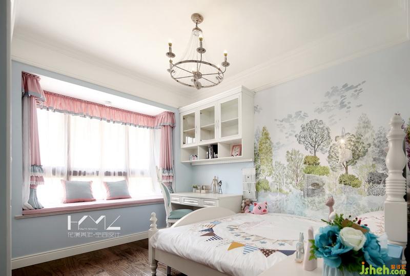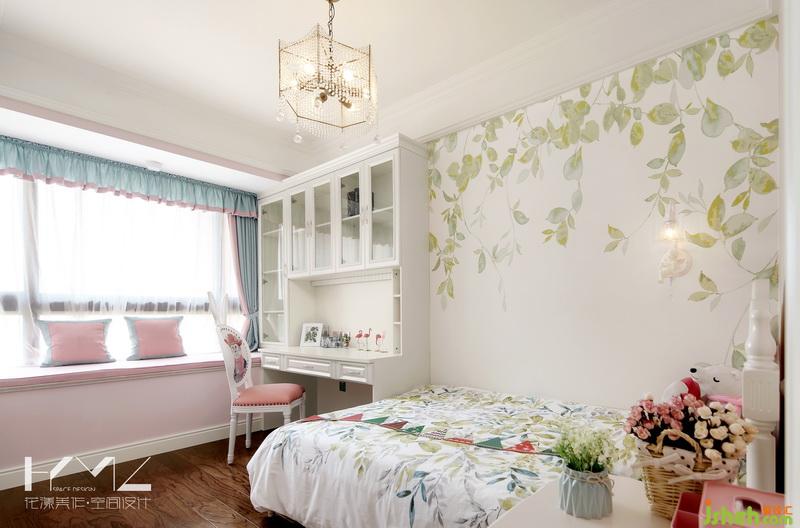 兩個女兒房則根據孩子的喜好做了兩個色系的搭配,南女兒房是溫暖如初的米橙色系,搭配了嫩綠的枝葉壁紙和床品,清新柔和。北女兒房則是迷之水藍色系,搭配了繽紛樹林的壁紙,床品則是碎花粉的搭配。兩個女兒房各有特色,這樣美好的房間應該是每個少女夢寐以求的成長圣地。
