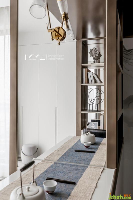 我們室內(nèi)設(shè)計(jì)師也大膽的使用不銹鋼大面包裹,原本生硬的不銹鋼如何運(yùn)用到室內(nèi)空間,我們也是多輪分析定奪,最終選擇古銅色的拉絲不銹鋼,目的就是營造硬朗簡潔的線條,讓中式風(fēng)格與現(xiàn)代材質(zhì)形成碰撞,如愿得到了我們都期待的效果。