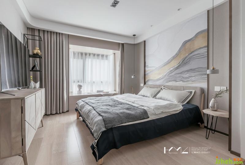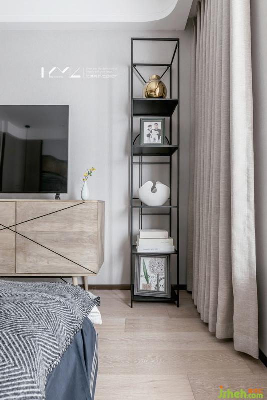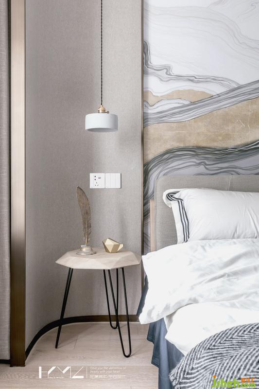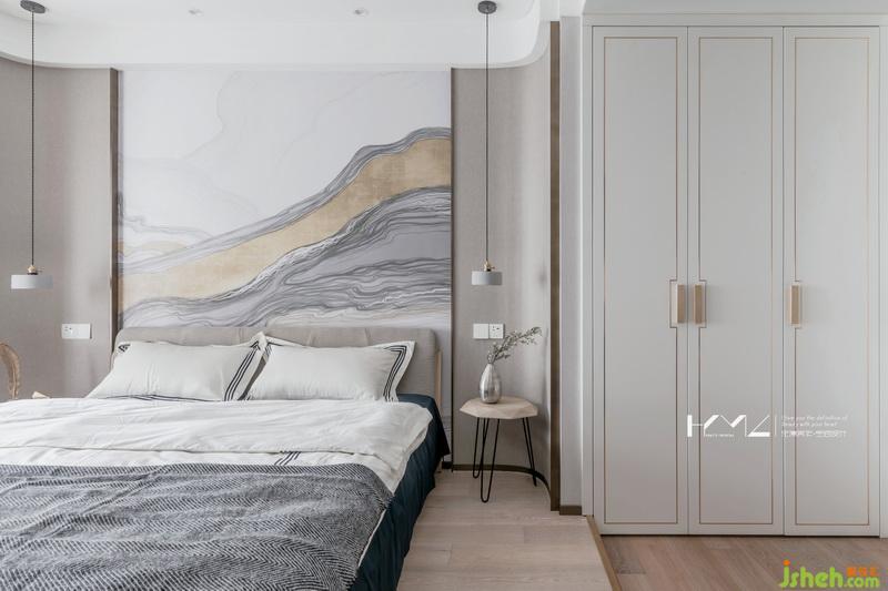 主臥地面通過高低差區(qū)分開來睡眠休息區(qū)和辦公更衣區(qū),這也是業(yè)主向我們提出的想法,希望空間能夠更加的細(xì)致,層次更加的豐富,衣柜柜門細(xì)節(jié),我們設(shè)計(jì)了金色中式裝飾框,著色很精致的銅制把手,豐富了細(xì)節(jié)感,床頭背景的寫意現(xiàn)代山水畫,凸顯了空間的莊重中式風(fēng)味,在這樣色彩比重很舒適的空間中,人感官會很舒適,亦不會審美疲勞。