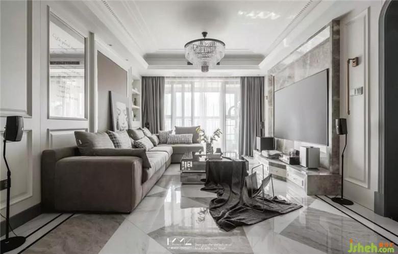 客廳地面地磚,選用了兩種顏色紋理進(jìn)行拼接鋪設(shè),設(shè)計(jì)了鉆石切割的鋪貼方案,高貴的材質(zhì)感,體現(xiàn)摩登時(shí)尚的生活品質(zhì),即使家居生活中不鋪地毯,也是讓人賞心悅目的。