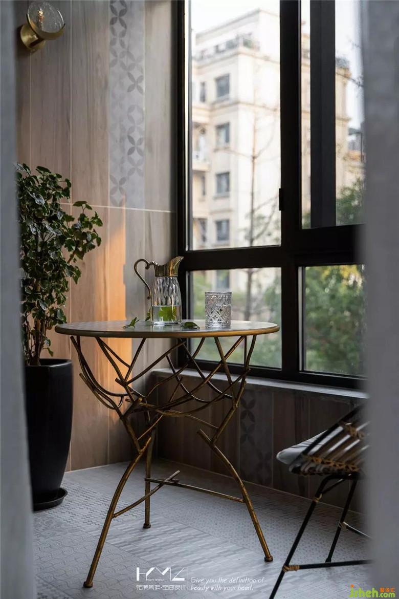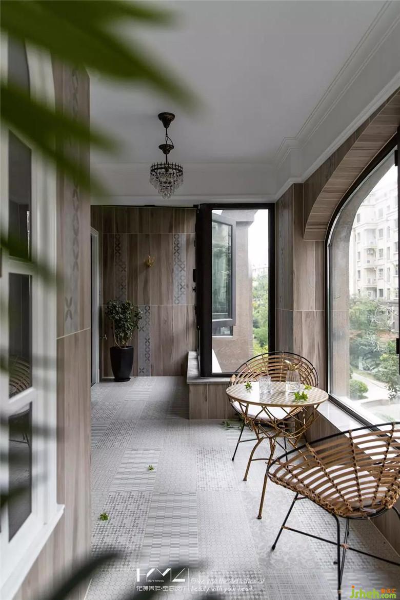 南邊陽臺,主要是供業(yè)主休憩品茶晾曬的空間,墻地磚在整體木紋色調(diào)統(tǒng)一的基礎(chǔ)上,尋求了紋理與質(zhì)感的變化。