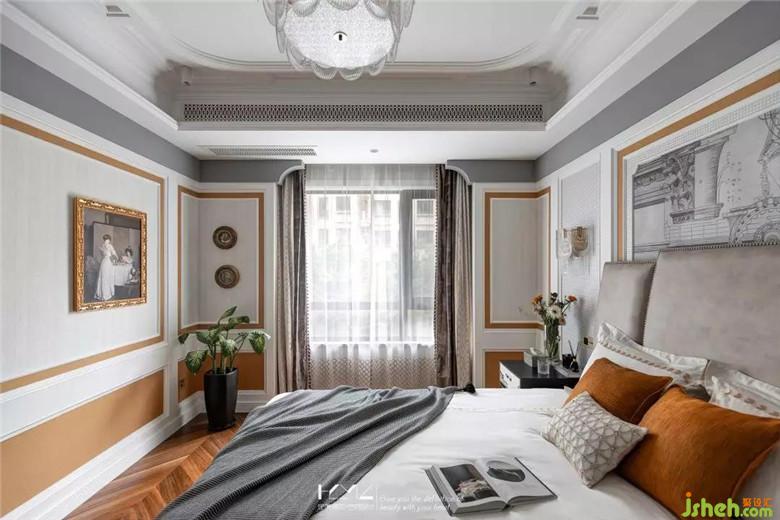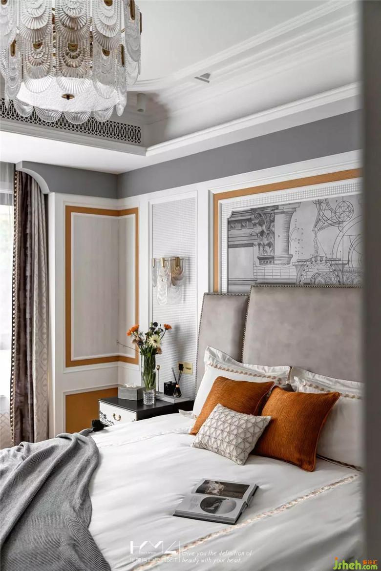 皮革鉚釘?shù)母弑炒?,尊貴而又懷抱安全感,中式復(fù)古的床頭柜打破界限的存在我們美式空間里,中西合璧貫穿始終。