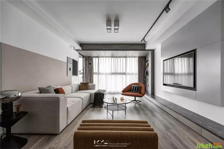 裝修公司電視背景線條切割,與沙發(fā)背景裝飾畫異曲同工