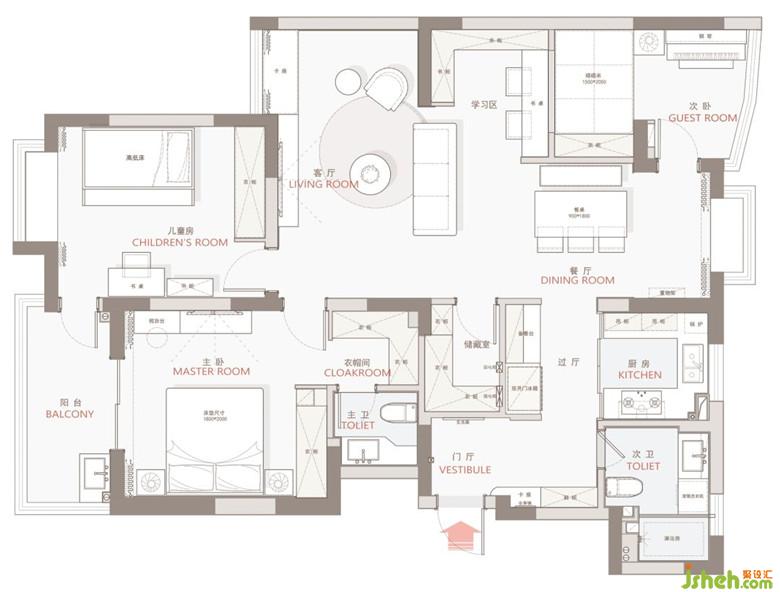 柜體考慮了常規(guī)儲(chǔ)物以及書籍、玩具收納