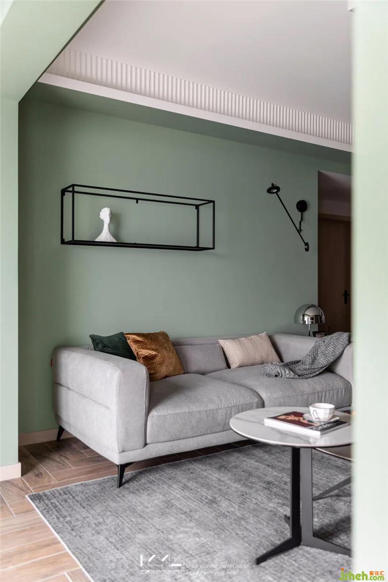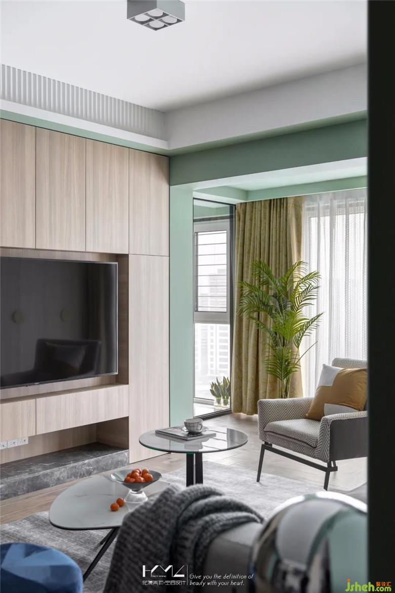 沙發(fā)背景與電視背景,乳膠漆與木飾面大塊面色彩