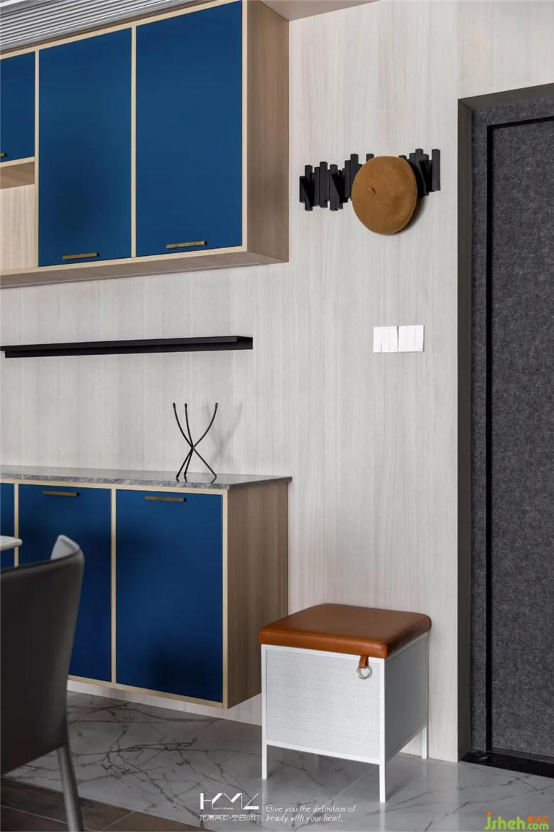 跳躍的藍色餐邊柜,顏值與實用兼具