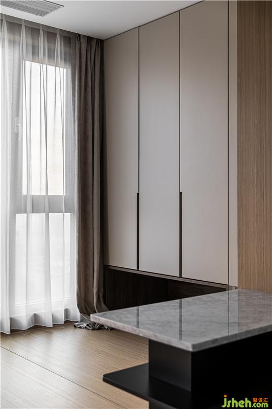 五金件均采用了預(yù)埋手法,石材紋理與黑色五金的材質(zhì)對比,細(xì)膩質(zhì)感延伸至每個(gè)角落.