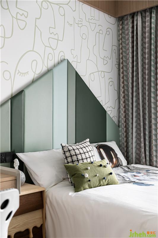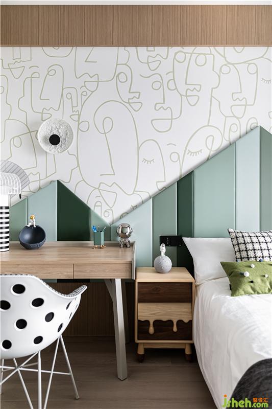 杭州家居裝修設(shè)計(jì)為小主人打造了獨(dú)立個(gè)性的臥室,特別定制的四色硬包拼接,運(yùn)用房屋造型勾勒趣味邊框,木飾面的運(yùn)用沿著頂順著墻、為陪伴入眠創(chuàng)造了溫馨的氛圍。