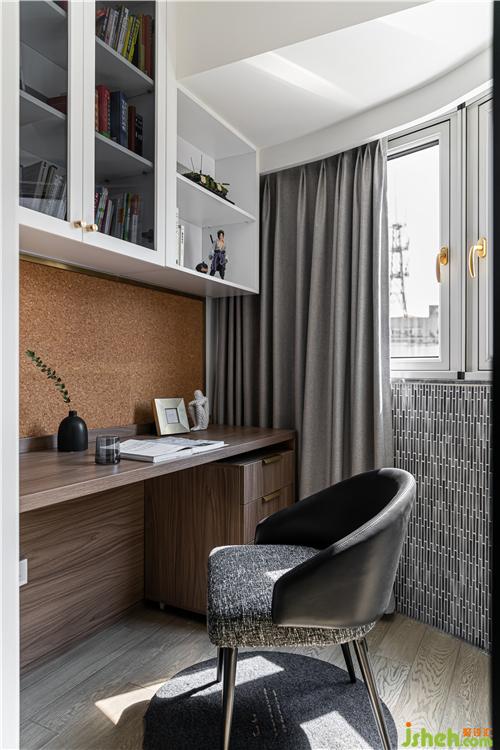 作為男孩房的附屬空間,將書房的功能置入,阻絕干擾,營造良好的學(xué)習(xí)氛圍.