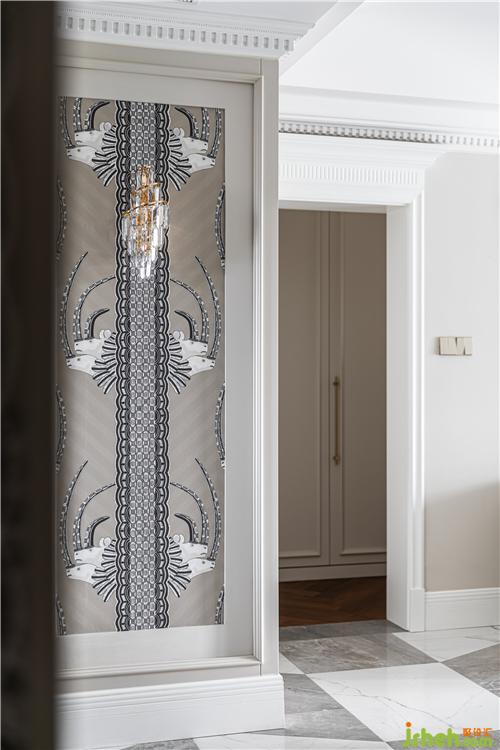 精致生動的犀牛墻紙,與水晶壁燈搭配,典雅與奢華的沖突之美.