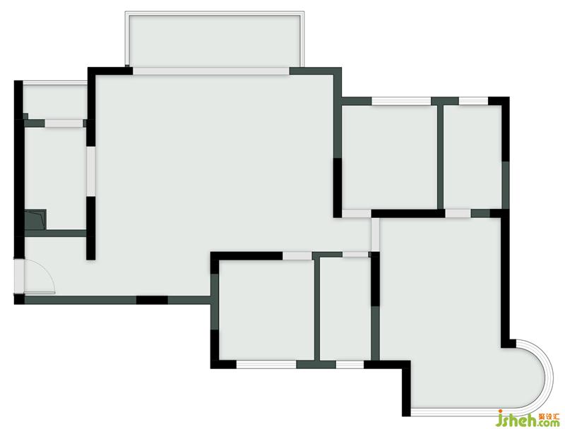 1. 陽(yáng)臺(tái)三面落地,視野無(wú)敵,弧形地臺(tái)的形式,將陽(yáng)臺(tái)納入客廳.