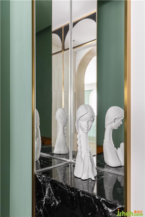大理石雕塑臺(tái)與金屬鏡面的組合,讓空間感更加豐富.
