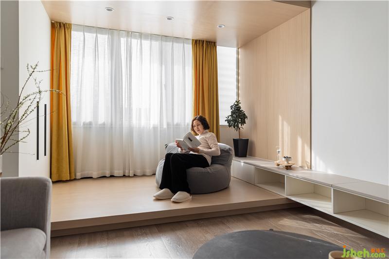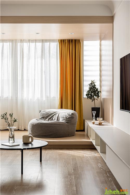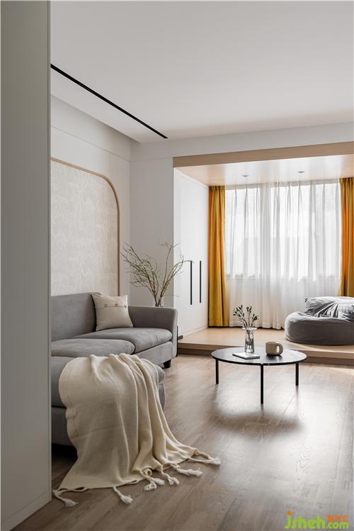 客廳采用無主燈設(shè)計,光源分散,讓家更有氛圍感. 整體色調(diào)以白色為主,點綴自然木色與灰色,窗簾的一抹黃色作為整個空間的跳色,干凈素雅的同時更加靈動南京裝修設(shè)計.