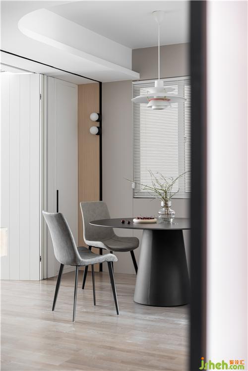 定制半開放餐邊柜,作為廚房和餐廳的過渡與連接,白色與原木色搭配,整體呈現(xiàn)自然凈透的空間質(zhì)感.