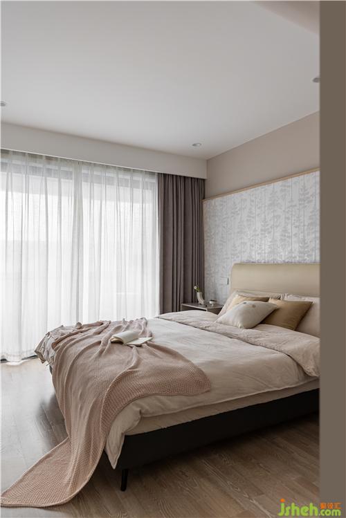 主臥以奶茶色為空間的主色調(diào),吊頂?shù)幕∶媾c背景的曲線呼應(yīng),結(jié)合背景氛圍燈帶,營(yíng)造優(yōu)雅溫柔的空間氣質(zhì)南京裝修設(shè)計(jì).