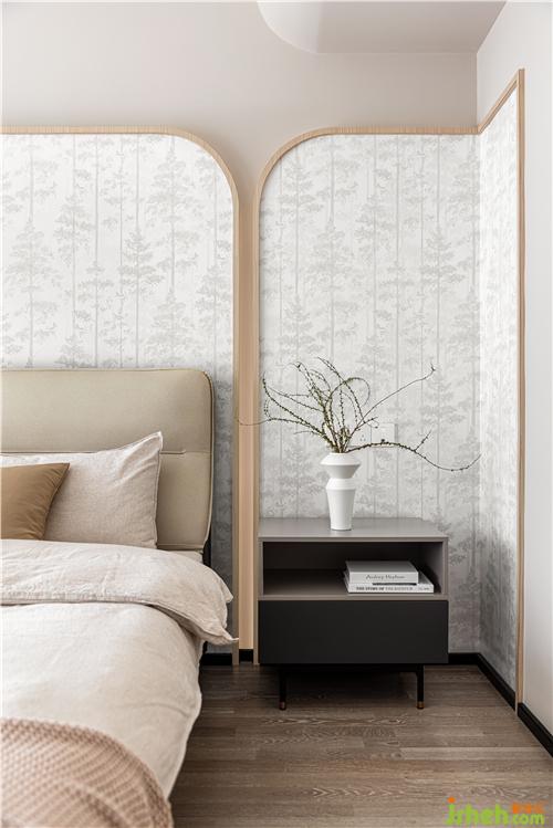 進(jìn)口森林樹木壁紙,帶給主臥清新的自然氣息.