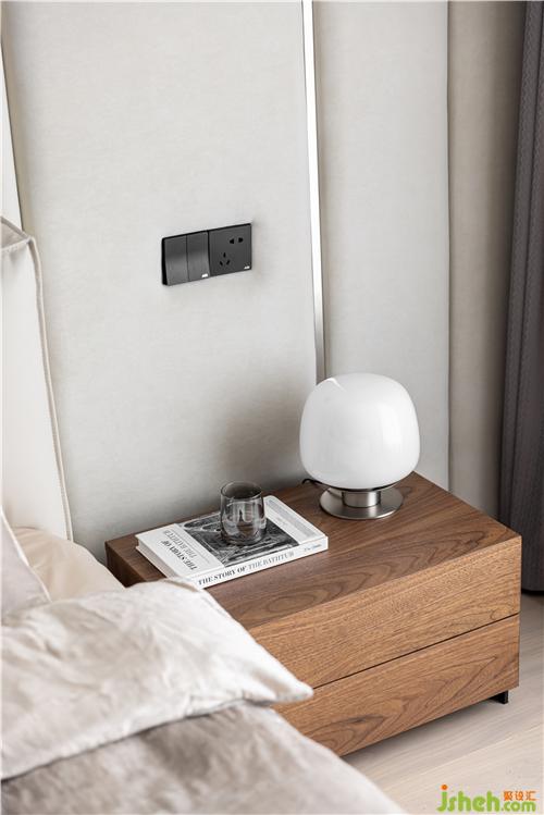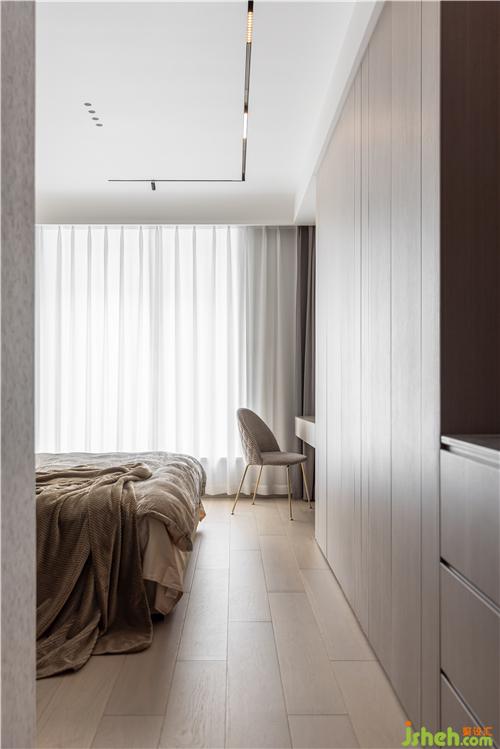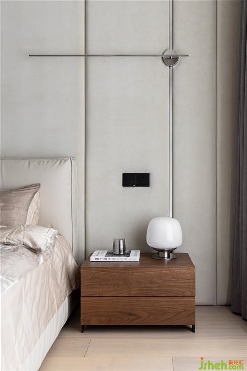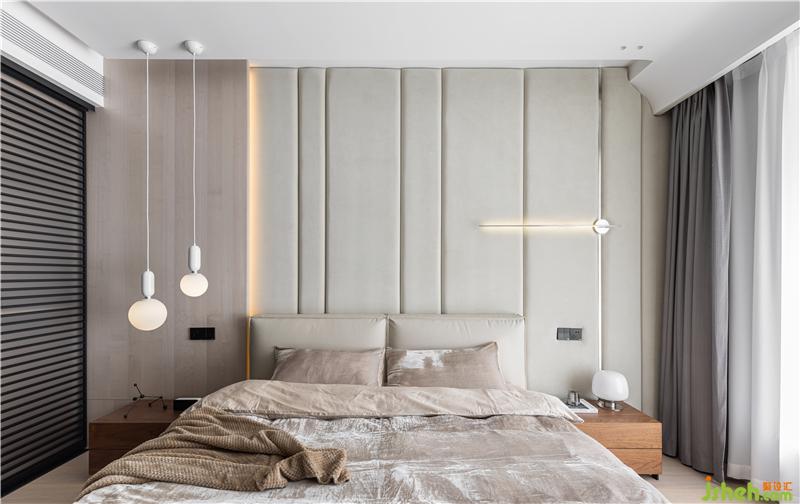主臥延續(xù)了客廳的調(diào)性,柔和的色彩、靜雅的線條、安靜不張揚,優(yōu)雅的配色抹平了生活棱角,簡約素雅中夾雜著一份寧靜,讓人身心放松.