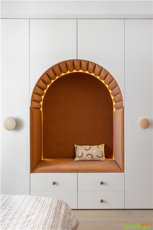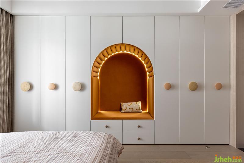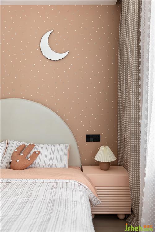 月亮造型壁飾,讓床背景仿佛點(diǎn)點(diǎn)星空一樣的存在,美輪美奐.