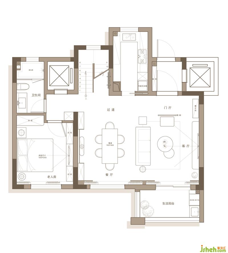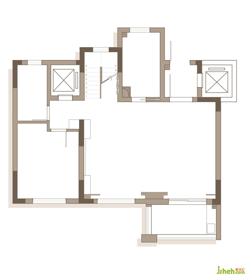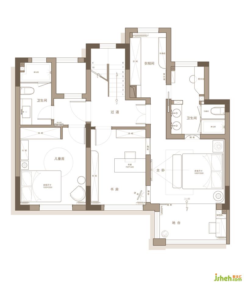 二層:書(shū)房與主臥獨(dú)立,保證主臥的私密性.