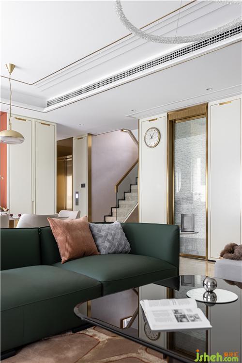 維持了原有的格局,餐邊柜區(qū)域用獨(dú)特的西柚色系作為點(diǎn)綴,鏡面裝飾無形中延伸視野,加上松茸造型的垂感吊燈,讓空間更具輕奢、精致的氛圍.