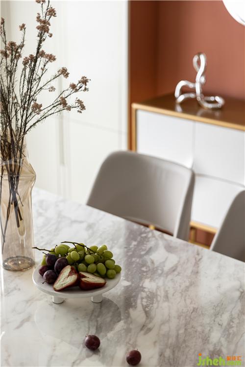 一米八長(zhǎng)的石材餐桌既可以容納一家人用餐的歡聲笑語,也可以兼具夫妻二人的浪漫小資.