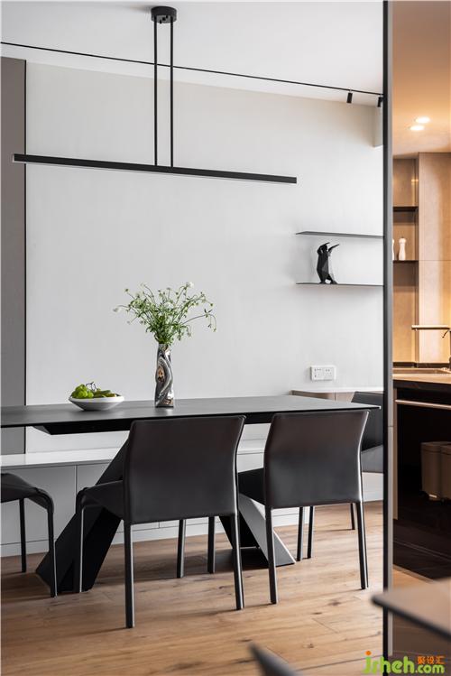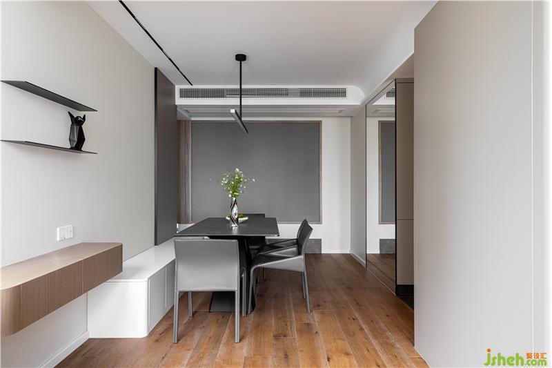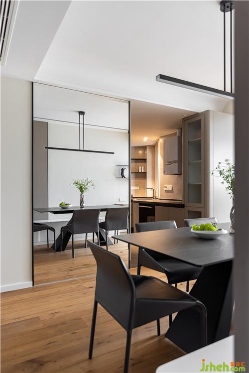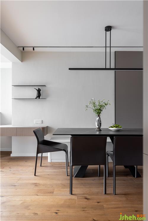 餐廳選用與客廳地臺同色系的巖板材質(zhì)餐桌,與原木色地板搭配,氣質(zhì)溫潤. 綠色植物的點綴南京室內(nèi)設計師,讓整體氛圍更加清新明快、生機盎然,開啟美妙和諧的用餐時光.