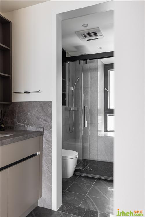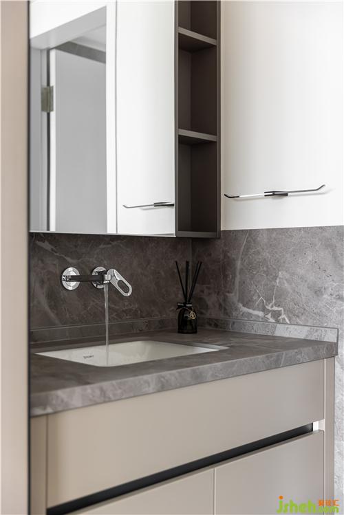 次衛(wèi)采用干濕分離設(shè)計(jì),提高空間利用率. 壁掛鏡柜為干區(qū)提供足夠的儲(chǔ)物空間南京室內(nèi)設(shè)計(jì)師. 選用臺(tái)下盆、嵌入式水龍頭,避免衛(wèi)生死角,實(shí)用美觀.