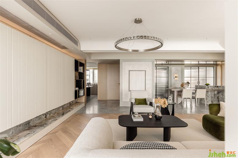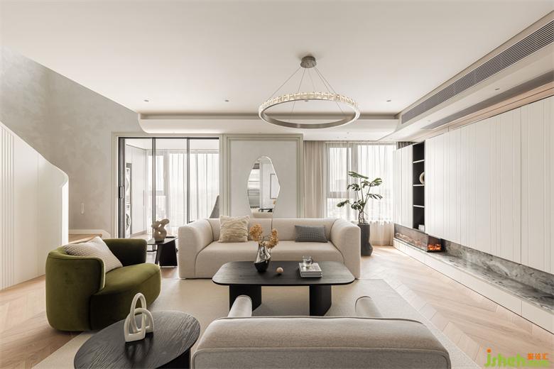 客廳以極簡的設(shè)計手法,打造出一個溫暖靜謐的質(zhì)感空間,輕盈視感的家具單品,圍合出舒適的起居中心,橄欖綠的絲絨沙發(fā)調(diào)和了空間的層次,空間的每一處都盡顯溫柔治愈,去掉不必要的繁雜細節(jié)和線條,呈現(xiàn)了一個自然純粹美好的居家環(huán)境。