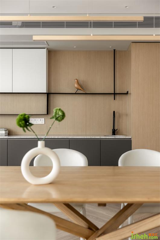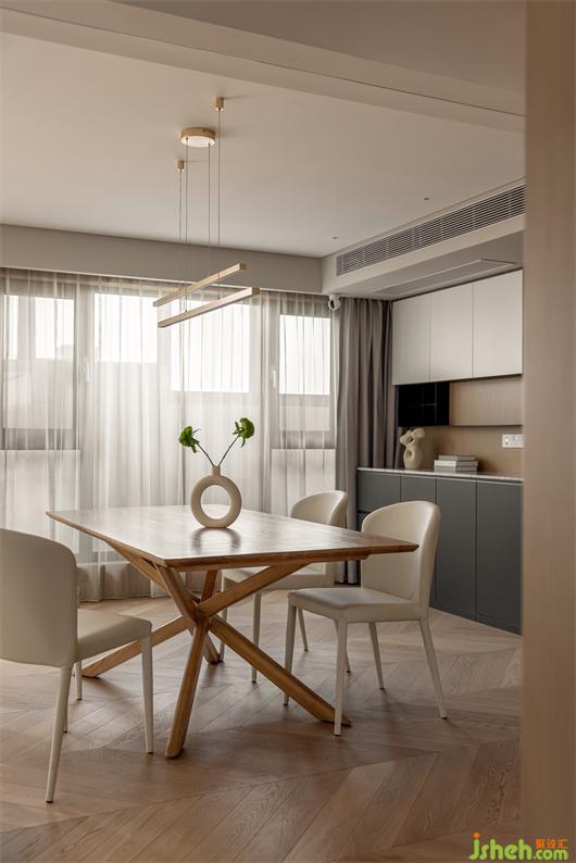 二樓主臥,藝術(shù)涂料包裹整個墻面,細膩的質(zhì)感,豐富了簡素的空間,床背不規(guī)則的軟包切割,有序的鋪成,花漾美作背景一幅暖橙藝術(shù)掛畫,清醒又獨立,如同暖冬里的陽光,投射進平凡的生活里。對空間、光線和線條的處理顯得游刃有余。