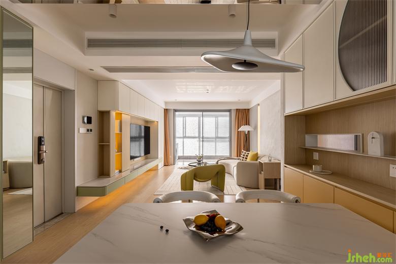 南京家裝設(shè)計(jì)整體采用無(wú)主燈設(shè)計(jì),踢腳線也被藝術(shù)涂料代替,空間自上而下流暢一體,營(yíng)造統(tǒng)一序列感,擴(kuò)大空間視覺(jué)。整鋪的原木地板讓空間延伸性更強(qiáng),自然的行走觸感也讓緊湊的都市生活在回到家后得到釋放。