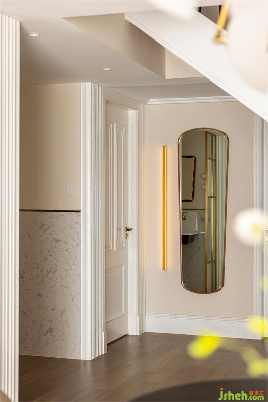 客餐廳之間設(shè)置一個360°旋轉(zhuǎn)電視架,花漾美作運(yùn)用了中軸對稱的設(shè)計(jì)理念,與大理石裝飾壁爐相呼應(yīng)布置,客廳圍合成經(jīng)典的對坐形式,高低組合鏡面質(zhì)感的茶幾現(xiàn)代時(shí)尚,木層板和鐵藝鋼架組合的展示架讓整個精致的空間增添了些許休閑氛圍。