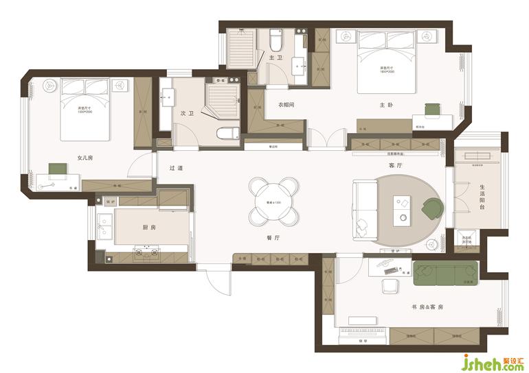 4. 書房容納鋼琴區(qū)及沙發(fā)床功能