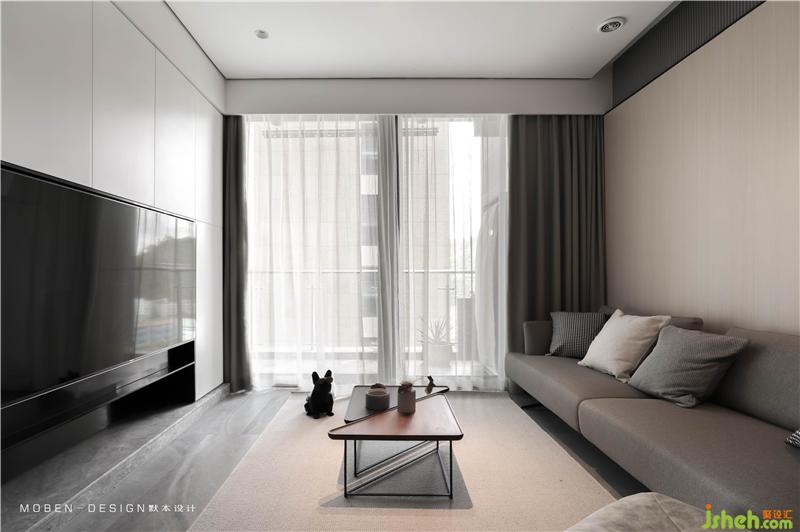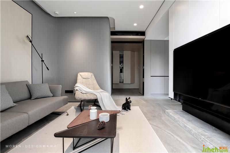 電視柜是一樓唯一白色體塊來(lái)呈現(xiàn)的區(qū)域