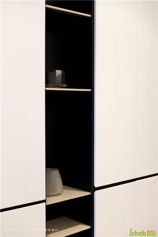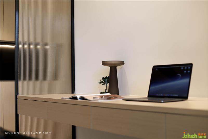 木飾面的分割和線條感,形成空間的轉(zhuǎn)換,過道木飾面和地板的延伸感,使空間顯得更大。