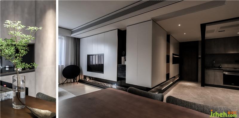 電視背景和入戶相互延伸設(shè)計(jì),擴(kuò)大整體空間感