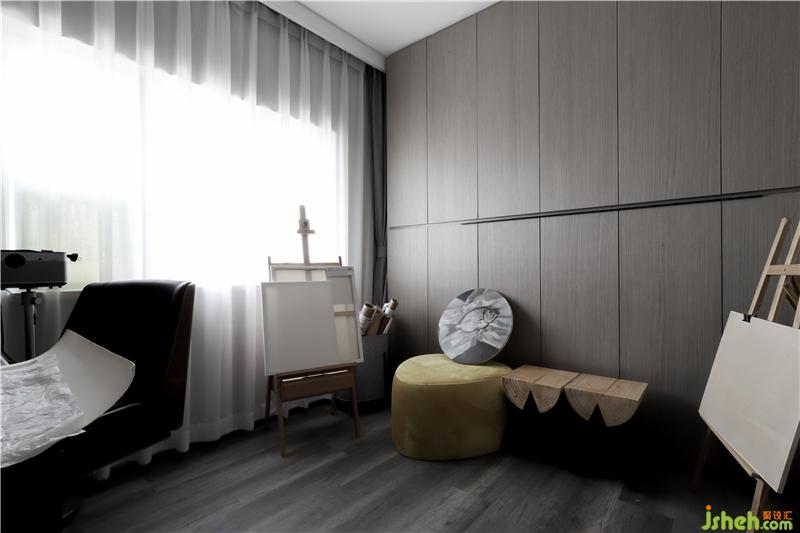 窗戶(hù)反梁位保留,暗藏窗簾盒和投影布幕