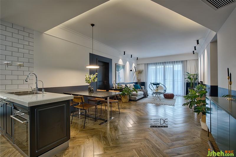 這是小歐和夏夏的第一套房,充滿了對未來美好生活的期待。為了讓這個(gè)“愛家”更有溫度,室內(nèi)設(shè)計(jì)師將原始結(jié)構(gòu)中廚房的格局打開把餐廳、廚房及客廳形成一個(gè)空間,將兒童房和客廳的共墻打開,擴(kuò)大兒童房儲存空間。不僅增加了公共區(qū)的空間,也提升了整個(gè)空間的開闊感和明亮度。老式新做,復(fù)古色調(diào)搭配緊致家具和飾品,打造出獨(dú)具個(gè)性的居家環(huán)境。