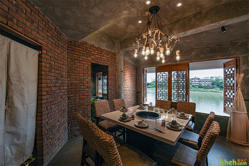 本項目位于大千故里甜城內(nèi)江,主體是一棟兩層的仿古建筑,室內(nèi)空間300平米是室外100平米院子,建筑本身于沱江相依,二層的窗洞如同一個一個的畫框?qū)拿谰氨霊阎小?