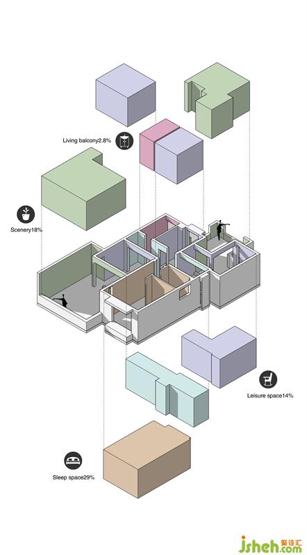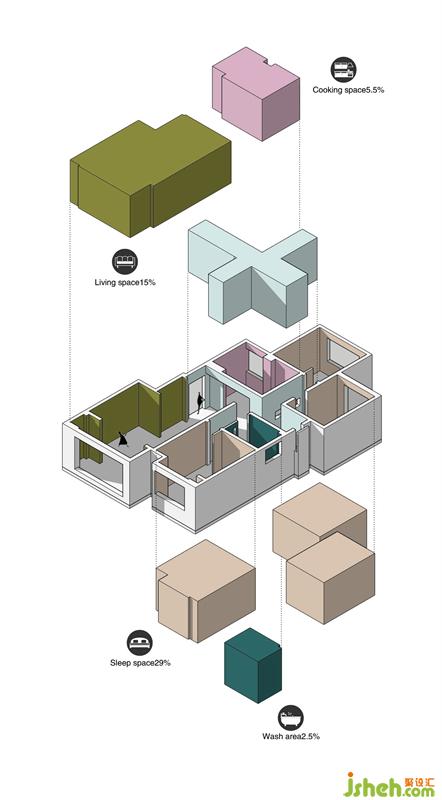 我們將廚房與過道的共用墻上局部打通讓在廚房中為一家人忙碌美食的母親與過道中玩耍的孩子有了更多的互動交流。