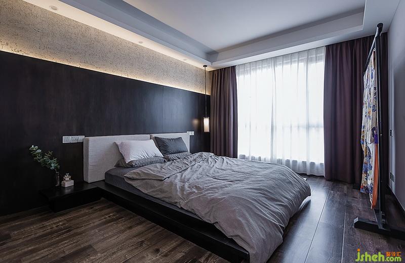 主臥床頭設(shè)計(jì)公司用木飾面做了半個墻面,上下分開,暗藏一整條燈帶,光線打出來,照在有木質(zhì)紋理的墻紙上,實(shí)地的看更具品質(zhì)感。整體簡潔的設(shè)計(jì)感讓人視覺得到享受。