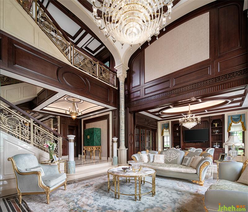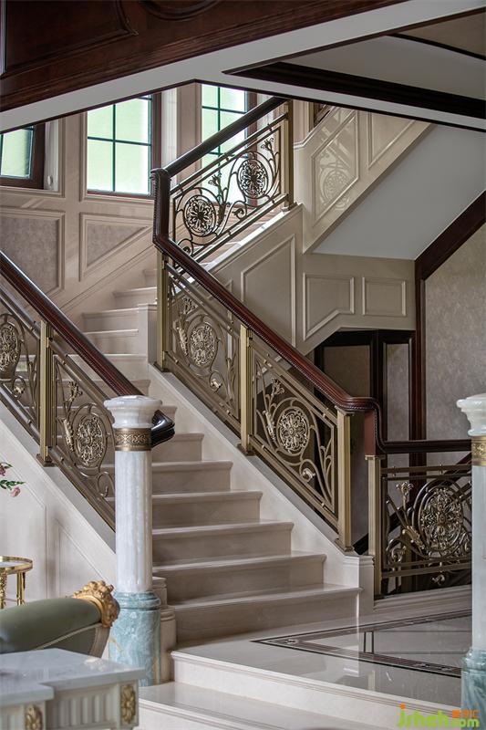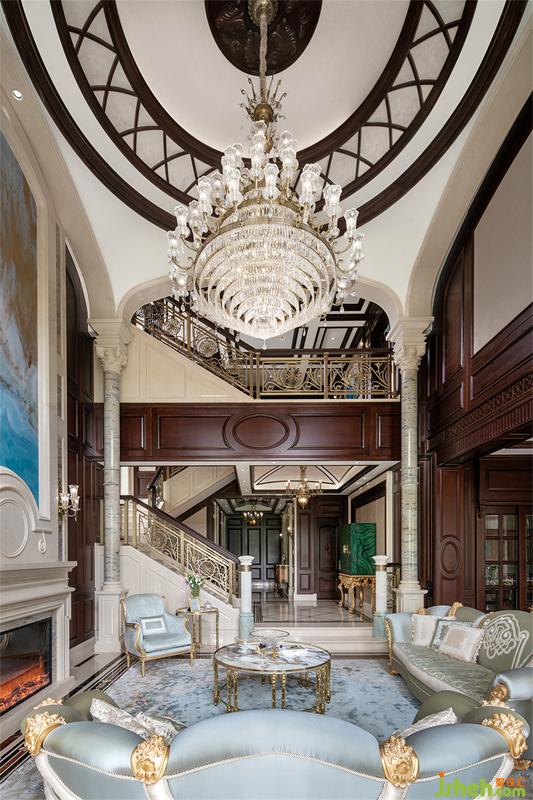 一樓行政會客廳運用巴洛克手法的石柱與弧線感的塑造表現(xiàn)中西文化的融合,空間內(nèi)的美感由飾面上的紋理一層層延展開來,仿佛低語著古老的詩歌。