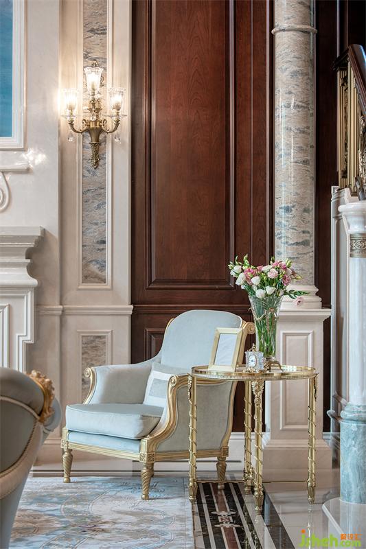 石材自然形成的紋理有著天生的獨特質(zhì)感,摘下拿破侖冠冕上的月桂葉撒上陽光刻入沙發(fā),明亮清麗的淡藍色洋溢著高級感,滿是柔和、平衡的視覺舒適。