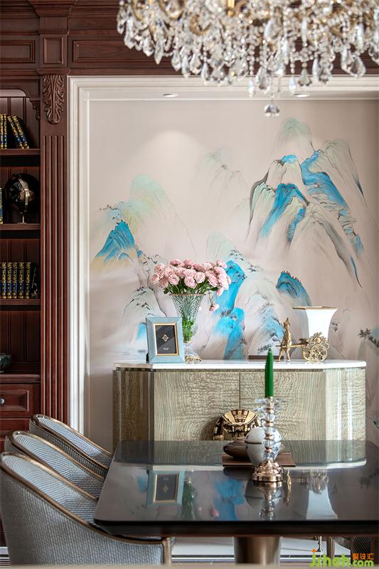 懸掛在廊道與臥室之間的畫作來自POSILLIPO瑪瑙明珠,靈感源于地中海的寶石、瑪瑙、香水的顏色,海洋的深淺陰影和海風(fēng)中飛翔的蝴蝶。將精致的奢雅主義與中式的返璞歸真感平衡得恰到好處,一切從這里慢了下來。