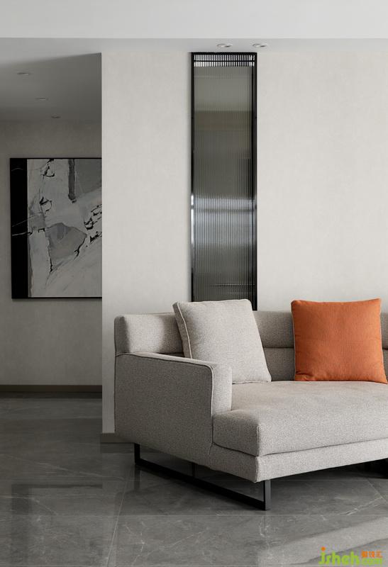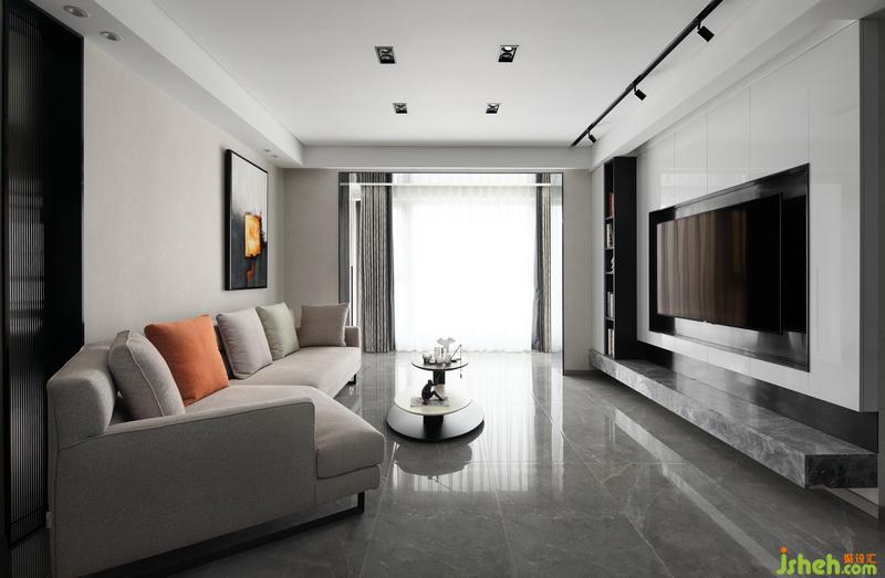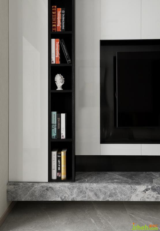 大理石懸挑地臺(tái)代替了傳統(tǒng)的電視柜,簡約的同時(shí)也預(yù)留了一部分儲(chǔ)物的空間。黑色鐵藝暗藏軌道射燈,打造空間藝術(shù)感,平凡的生活需要適當(dāng)?shù)睦寺c驚喜。室內(nèi)設(shè)計(jì)師