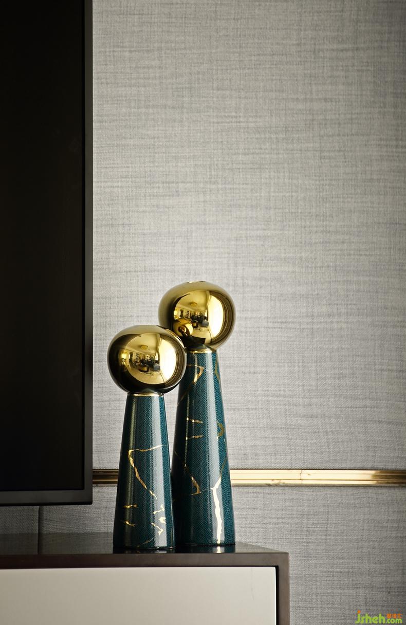 在本案中,設計公司設計師對于細節(jié)的呈現有著極致的追逐。富有織物觸感的藍色沙發(fā),大理石臺面的圓形組合茶幾,以及精心挑選的家居擺件等,都以當下最流行的黃銅做裝飾點綴,整體營造出視覺上的美感。