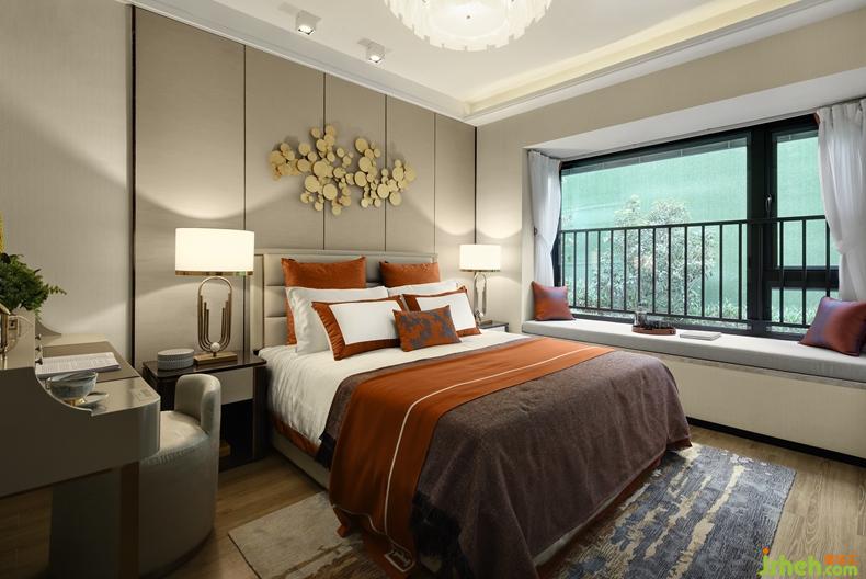 臥室的設計沉穩(wěn)、大氣,更加注重線條的質感,設計公司在顏色的配置上,與總基調相吻合,盡顯優(yōu)雅和浪漫,而次臥則采用了明麗的橙色,以滿足老人或孩子對溫暖和亮色空間環(huán)境的需求。