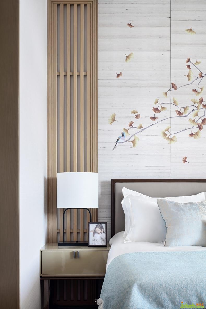 如蝴蝶般飛舞的黃色銀杏葉點(diǎn)綴次臥空間,靜而有力的想象,入畫也入心。