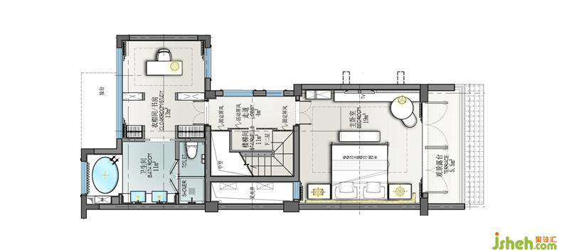 書房的設(shè)計(jì),流線型的墨線揮灑,融入遠(yuǎn)處的青山和白水,燕鳥在這方天地轉(zhuǎn)圜翱翔。別墅裝修設(shè)計(jì)墻上的飾畫對(duì)整個(gè)空間主題進(jìn)行詮釋:不若歸于此。畫里畫外,室內(nèi)室外,舍棄浮華與喧囂,重歸天地與自然。