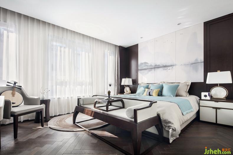 臥室充滿俊雅的味道,與空間整體用色保持一致。主人房的別墅裝修設(shè)計(jì)于簡(jiǎn)致對(duì)仗中富有變化。床頭背景墻的云霧、山水、桃花、水墨建筑,傳遞一派煙雨江南的溫潤(rùn)和典雅。茶幾上的陶瓷小品恰與背景墻上的桃枝形成呼應(yīng)。