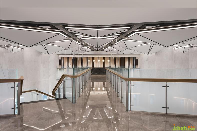 行至二層,空間中天花的設(shè)計(jì)由杭州綿延起伏的山體倒置演繹而來,酒店設(shè)計(jì)整個(gè)空間以黑白描繪,形態(tài)肌理的變化呈現(xiàn)出豐富多元的空間感知。